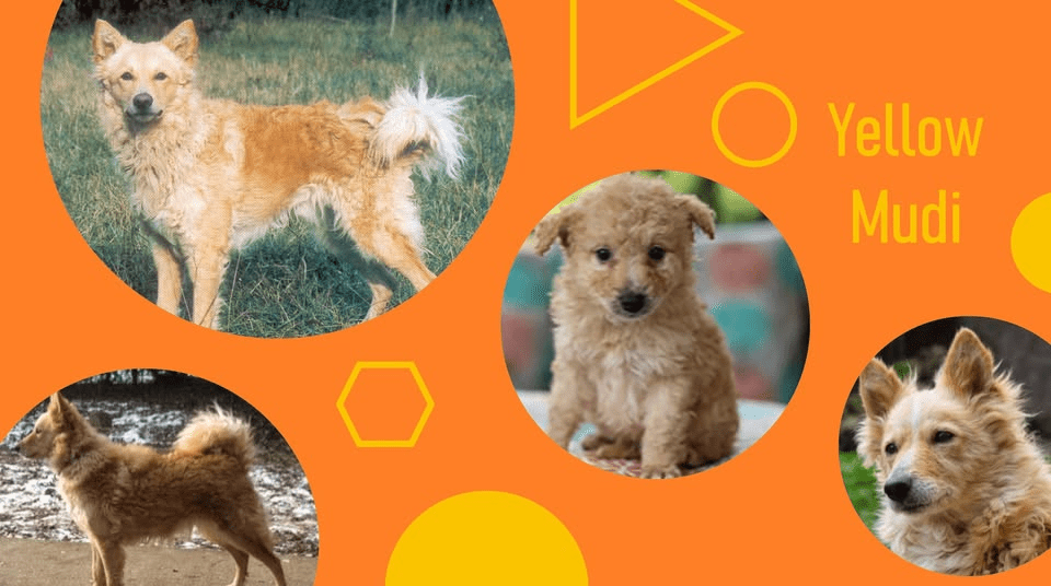 Yellow (Hungarian: Fakó, Aranyfakó) is a recessive gene, so two yellow or yellow-carrying parents are required for yellow offspring. “Yellow” can actually range in shade from pale cream to deep orange or darker fox red shade. Some Mudi are so pale they are considered white, though still caused by the same gene.